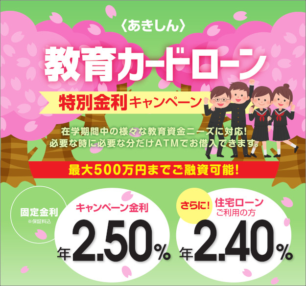 お子様の在学中はローンカードで教育資金がいつでもお借入できます。