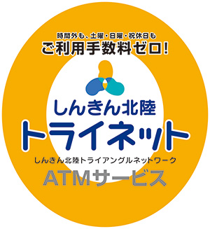 富山県・石川県・福井県に本店を置く信用金庫のキャッシュカードは、対象のステッカーのあるATMにて終日ご利用手数料無料で、いつでも、ご入金・お引出しいただけます。