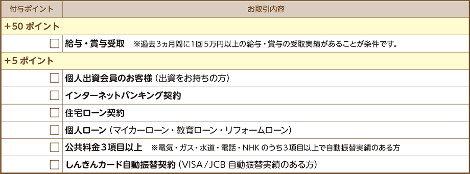 給与受取口座を飯能信用金庫に指定する(1回5万円以上の給与受取が必要です)