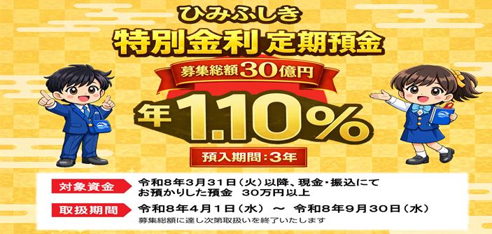 ひみふしき信用金庫では、おトクなキャンペーン商品をご用意しております。