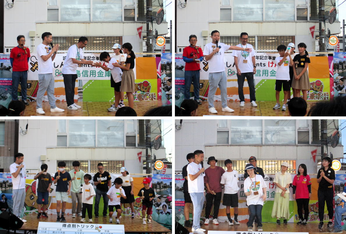 大会には14組45人の選手の他にけん玉パフォーマーの砂原先生、廿日市出身のお笑い芸人りょうーまさんを司会にお招きし、RED☆EYE、けん玉かーちゃんず、けん玉道選手権優勝者の松冨裕輝君にもゲスト出演いただき、おおいに祭りを盛り上げていただきました。