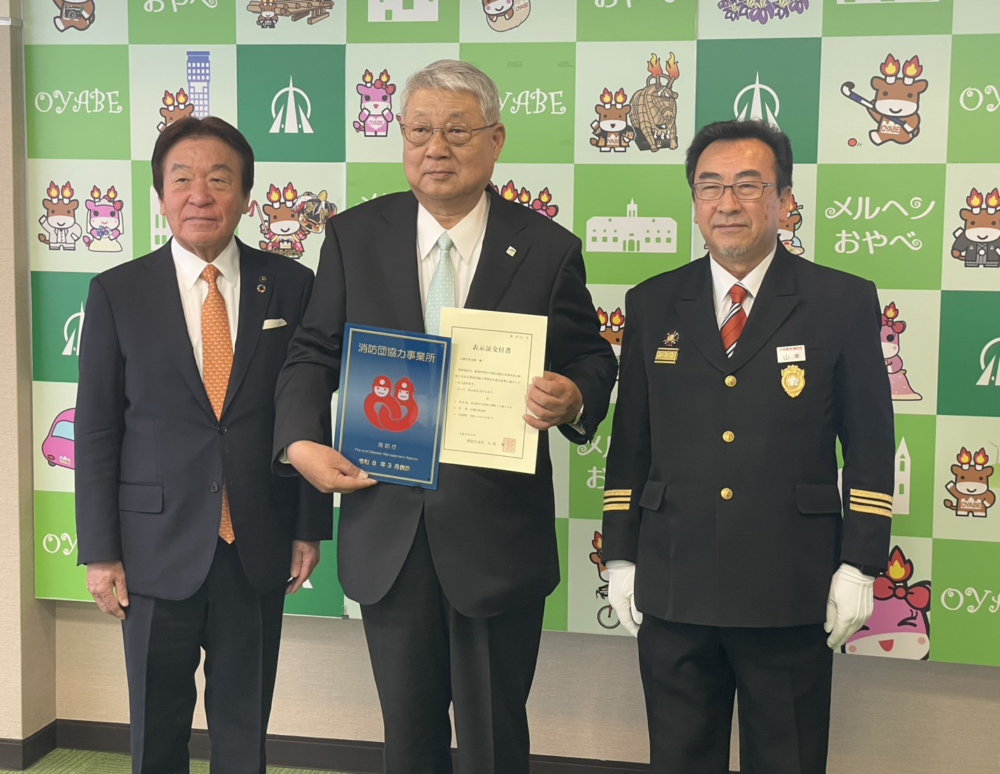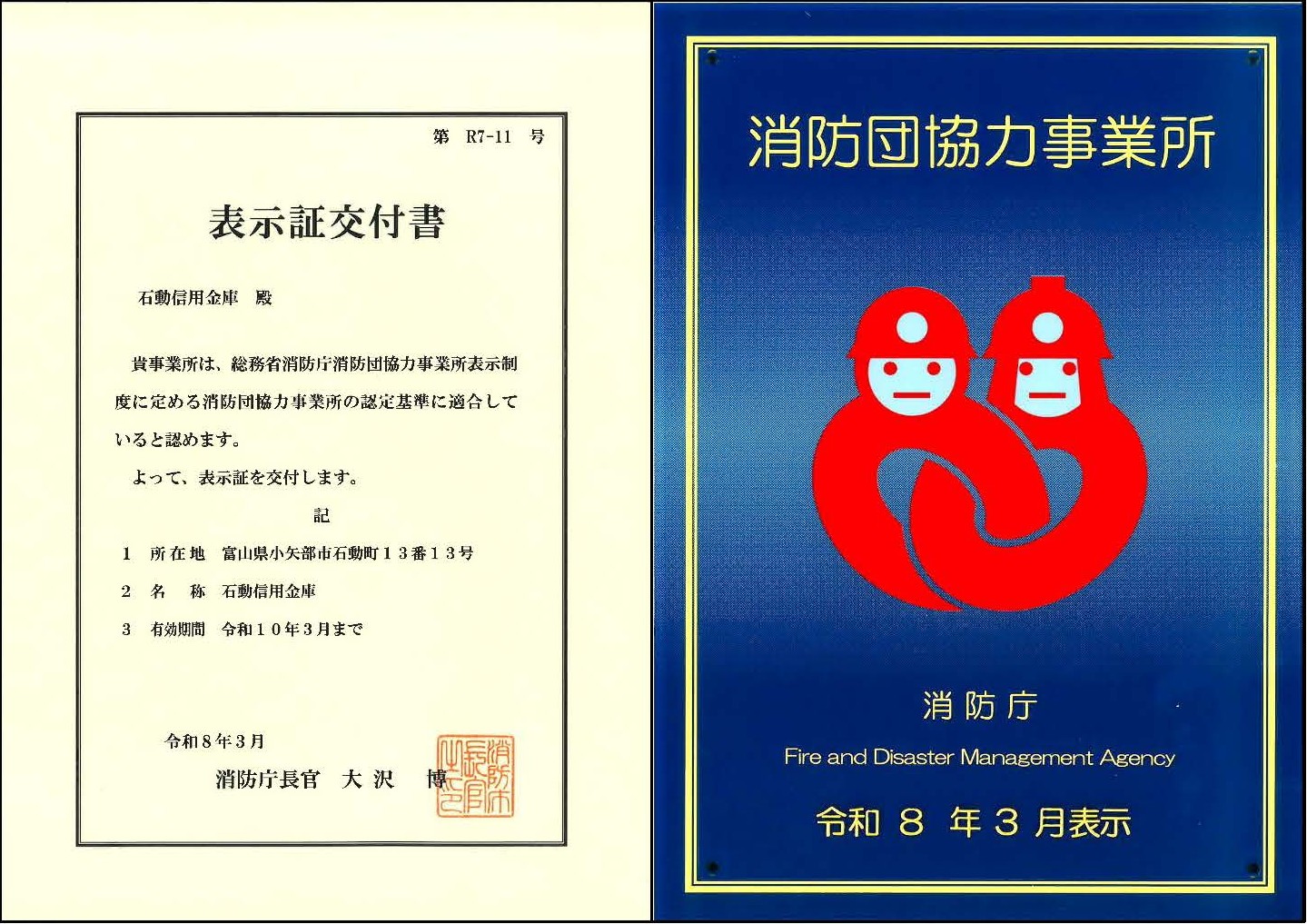 2026年3月に消防庁より「消防団協力事業所」として認定され、表示証の交付を受けました。