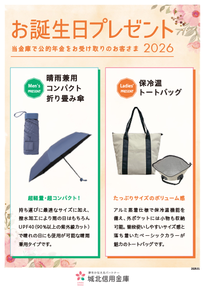 年金が振り込まれる月の15日(休日の場合、前営業日)に、ご来店された方に感謝をこめてプレゼント品を差し上げます。(先着順)