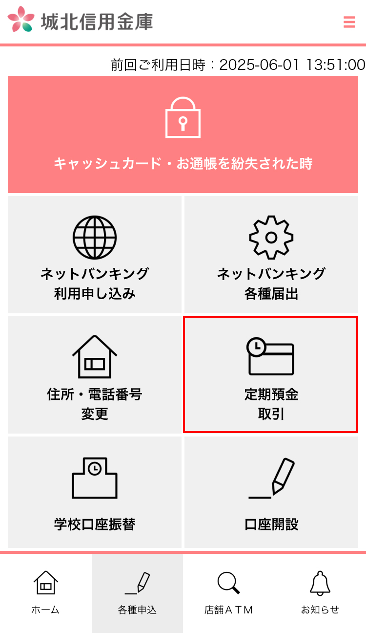| 受付方法 | 窓口、営業担当者、城北アプリでの受付 | ||||||