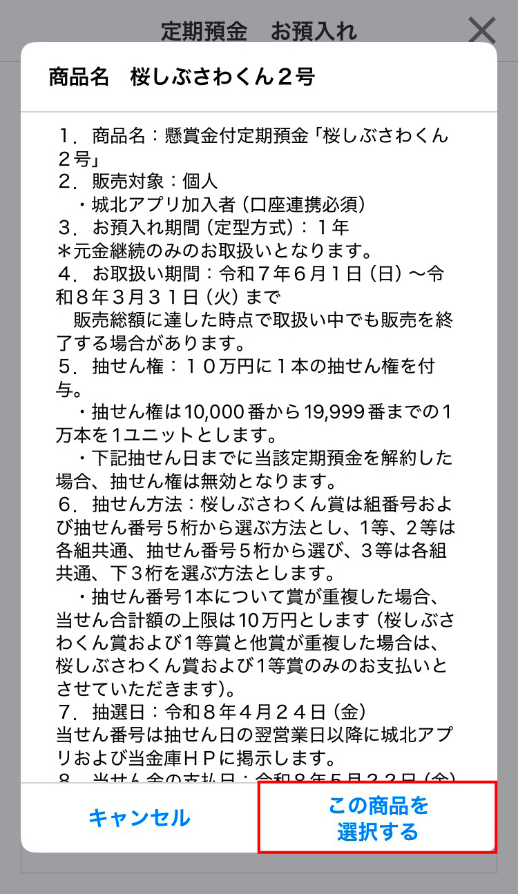 | 商品名 | 懸賞金付定期預金「桜しぶさわくん2号」 | ||||||
