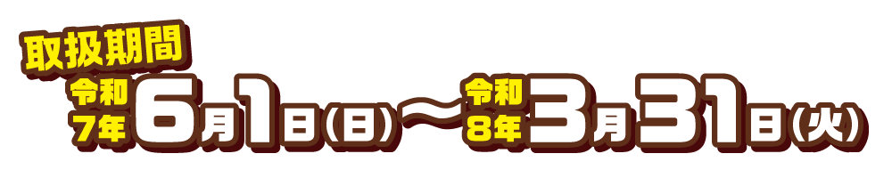 | 令和7年6月1日(日)~令和8年3月31日(火)まで 販売総額に達した時点で取扱い中でも販売を終了する場合があります。 |
