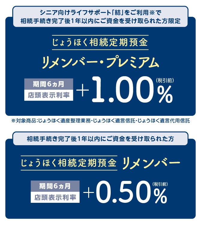 | じょうほく相続定期預金 リメンバー・プレミアム | じょうほく相続定期預金 リメンバー | |
