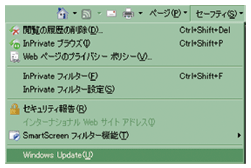 ブラウザメニューの「ツール」→「Windows Update」をクリックする。![]() |