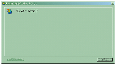- インストールが終了すると、「インストールの完了」画面が表示されるので、[閉じる]をクリックする。