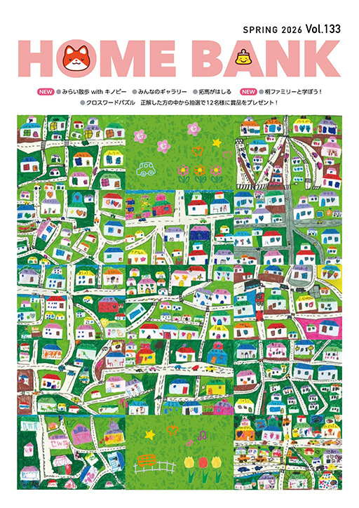 きりしんが年4回発行しているHOME BANK。毎号様々な情報をわかりやすくまとめた特集や、職員が体当たりで取材した地域の魅力など、情報満載の冊子です。
