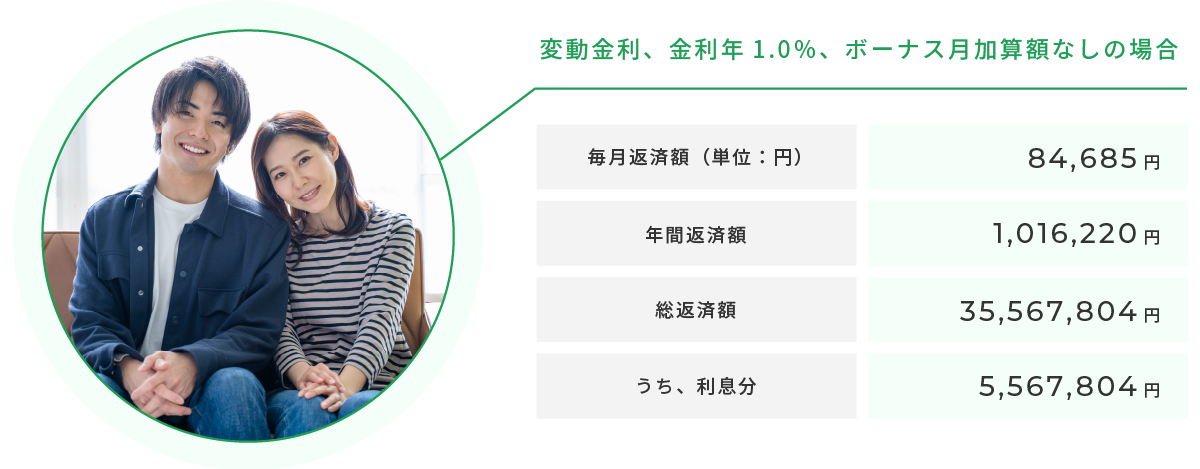 - 将来の金利動向により、実際のご返済金額は、試算結果と異なることにご注意ください。