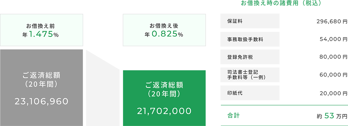 お借換え時の諸費用約53万円を考慮しても約87万円おトクに!