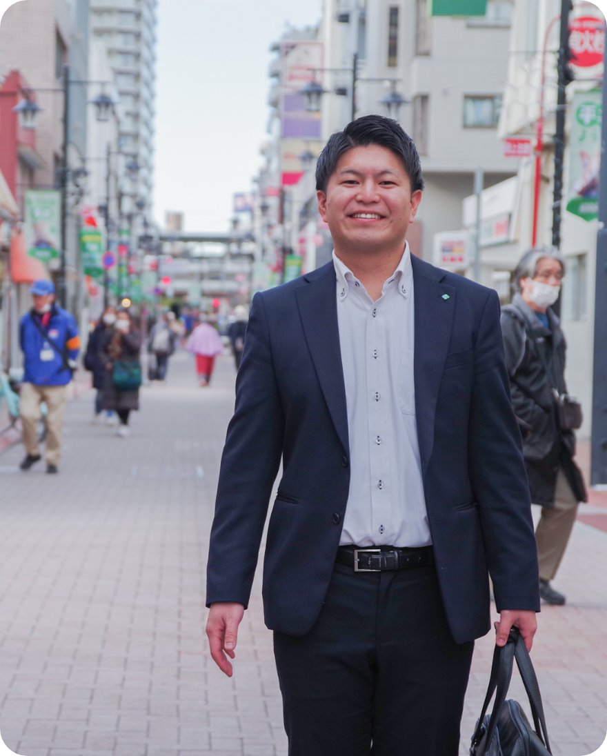 父が町内会の役員をしており、子供の頃から地域のお祭りやイベントに参加していました。そこで信用金庫の職員さんが手伝いに来ている姿をよく見かけ、親近感を持っていたのがきっかけです。 実は当初、教員を目指していました。しかし教育実習の時期と就職活動のピークが重なってしまい、他社が待ってくれない中、小松川信用金庫だけは実習が終わるのを待ってくれました。その「人を大切にする温かさ」が入庫の決め手になりました。
