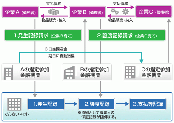 こうさん電子記録債権サービスは、電子記録債権法に基づき、でんさいネットを利用して提供する新しい決済サービスです。