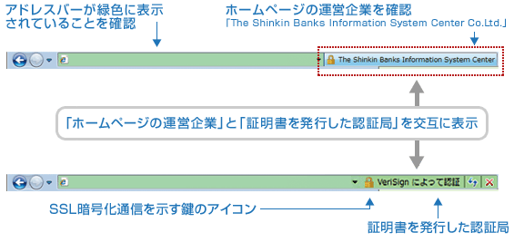 2. 暗証番号(パスワード)を入力するページのアドレスバーが緑色に表示されていることをご確認ください。