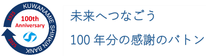 当金庫は大正14年(1925年)7月1日に「有限責任信用組合桑名金庫」として発足し、令和7年(2025年)7月1日に創立100周年を迎えます。