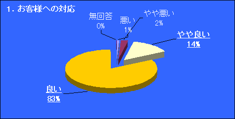 83%のお客様が「良い」、14%のお客様が「やや良い」とご回答下さいました。今後もお客様にご満足いただける対応を心掛けます。