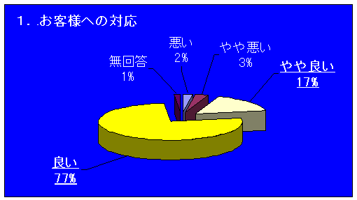 77%のお客様が「良い」、17%のお客様が「やや良い」とご回答下さいました。今後もお客様にご満足いただける対応を心掛けます。