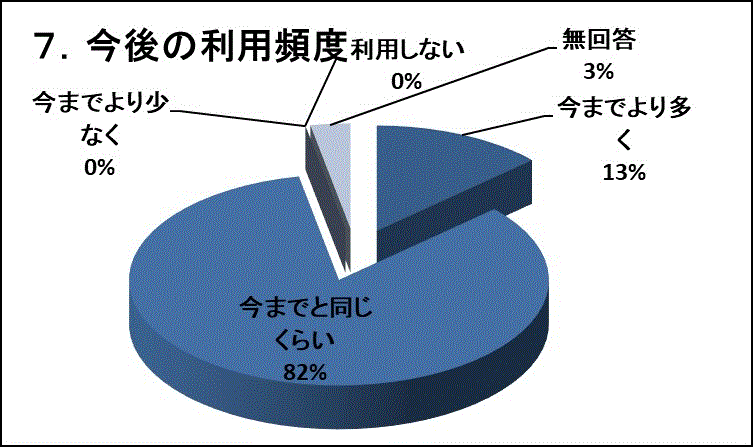 82%のお客様が「今までと同じくらい」ご利用いただけるとお答えくださいました。また、13%のお客様が「今までより多く」利用したいとお答えくださいました。