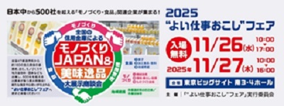 盛岡信用金庫(理事長 浅沼 晃)は、令和7年11月26日(水)・27日(木)東京ビッグサイト南3・4ホール(東京都)を会場に開催された「2025“よい仕事おこし”フェア 全国の信用金庫による モノづくりJAPAN 美味逸品 大商談会」へ、主催者である実行委員として参画しました。