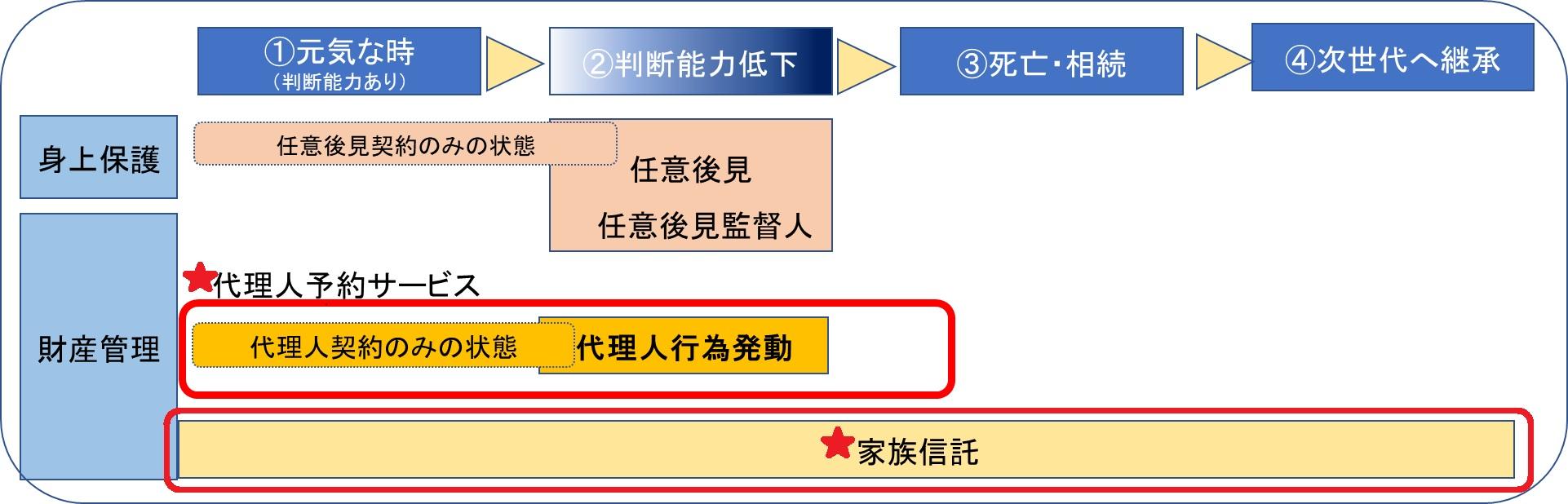 あらかじめ財産の管理・運用を、信頼できるご家族に託す・任せる仕組みです。