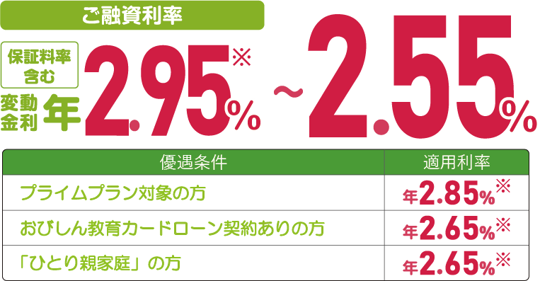 ③職域サポート優遇(おびしんカーライフプラン、しんきん個人ローン)および、ひとり親家庭優遇(帯広しんきん教育ローン)の取扱いはできません。