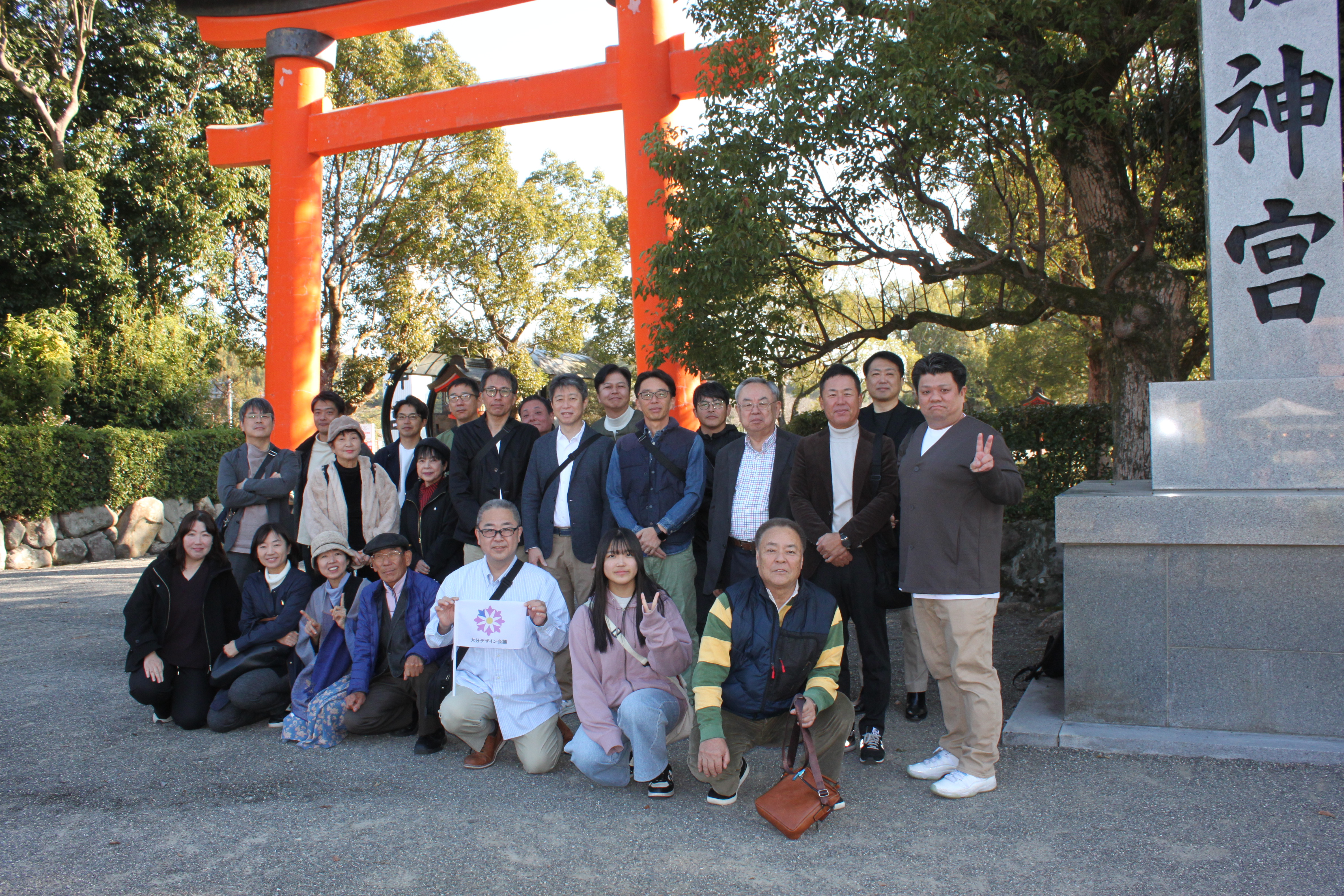 当庫で年金を受給されている方で構成される「元気会」の会員75名が参加して、宇佐、安心院方面へ日帰り旅行を実施しました。毎年楽しみにされている会員の方が多く、2018年は宇佐・安心院方面で、宇佐神宮では普段入ることのできない本殿で特別参拝を行い、ワイナリーで新種のワインを堪能するなど、秋の一日を満喫しました。