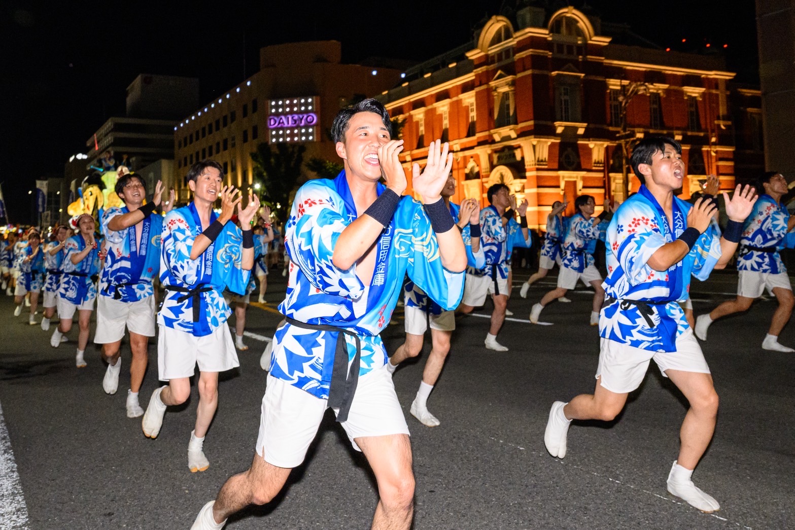 当日、踊り隊は練習の成果を発揮し一体感のある輝きを魅せ、練り隊は威勢のいい安定した練りを披露しました。
