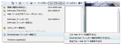 Internet Explorer 8.0の場合(SmartScreen フィルター機能)