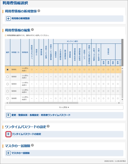 ロ.利用者ワンタイムパスワード設定の「+(プラスボタン)」を押します。