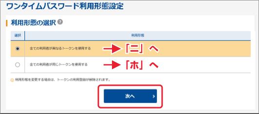 ⇒「全ての利用者が異なるトークンを利用する」を選択した場合、ニへ