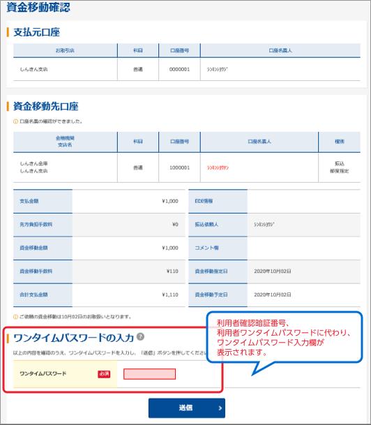 管理者がトークンの登録を行うと、資金移動確認画面は以下のとおり変更されます。
