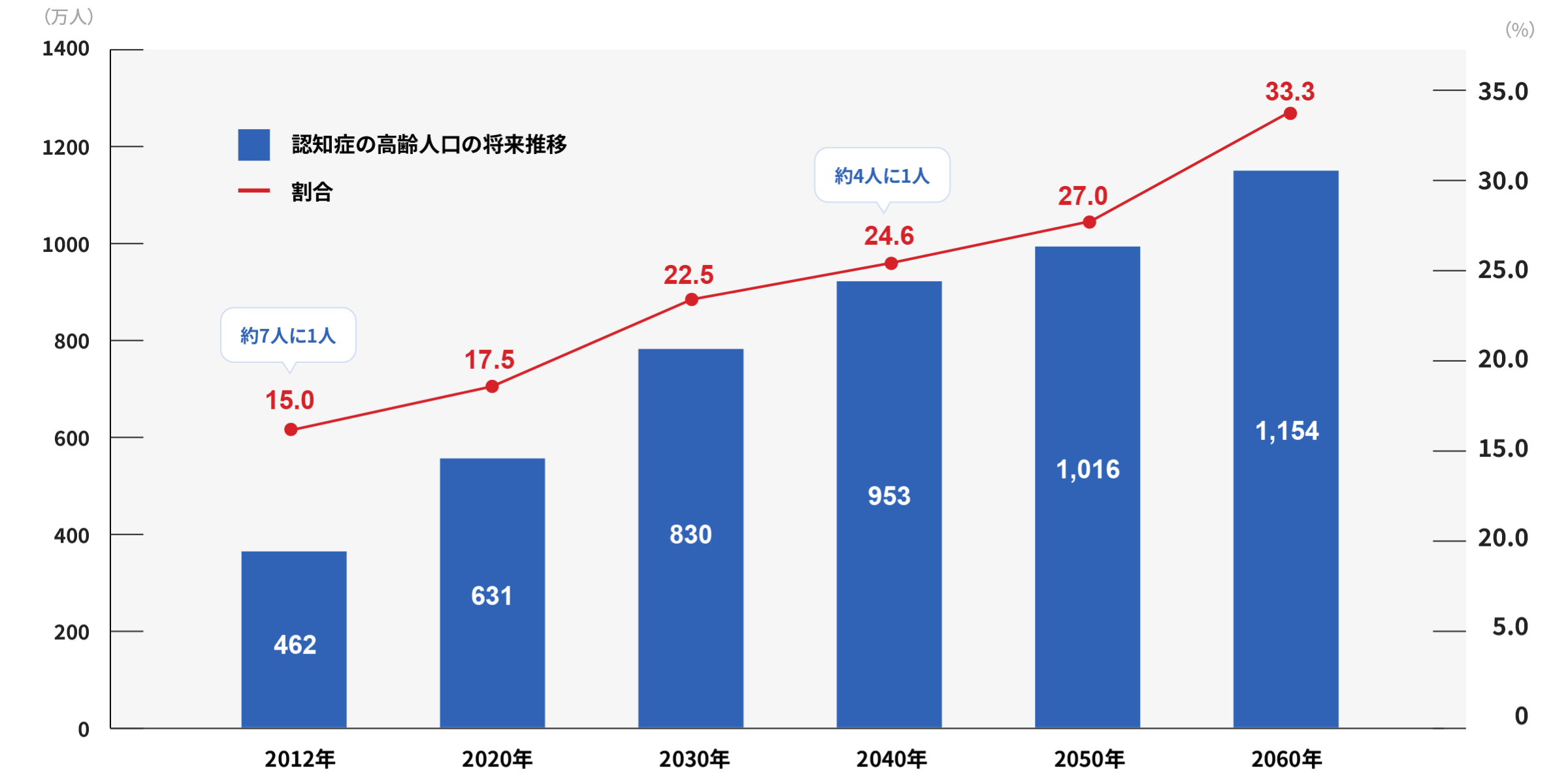 出典:厚生労働省「日本における認知症の高齢者人口の将来推計に関する研究(平成26年度)」