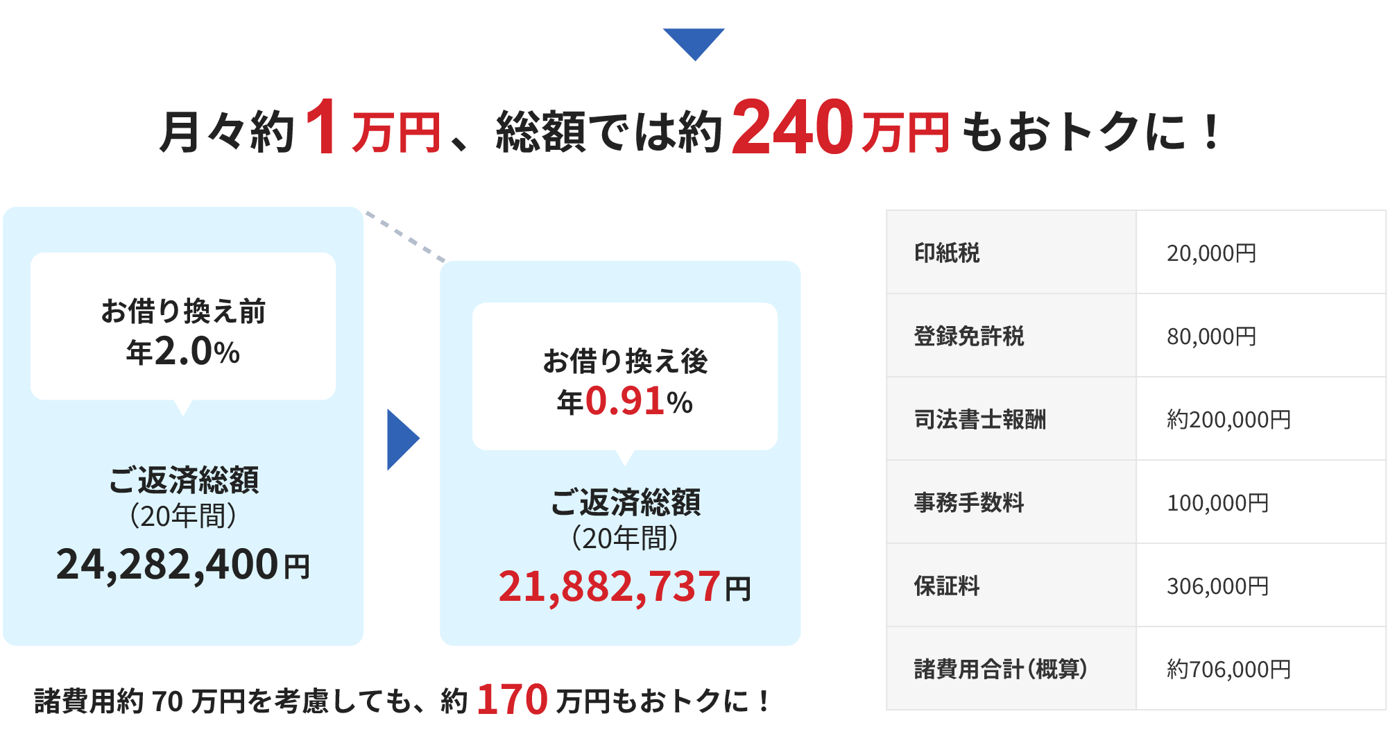ただし、借入状況(担保設定費用や団信)によりますので、まず詳しくは店頭窓口へお問い合わせください。