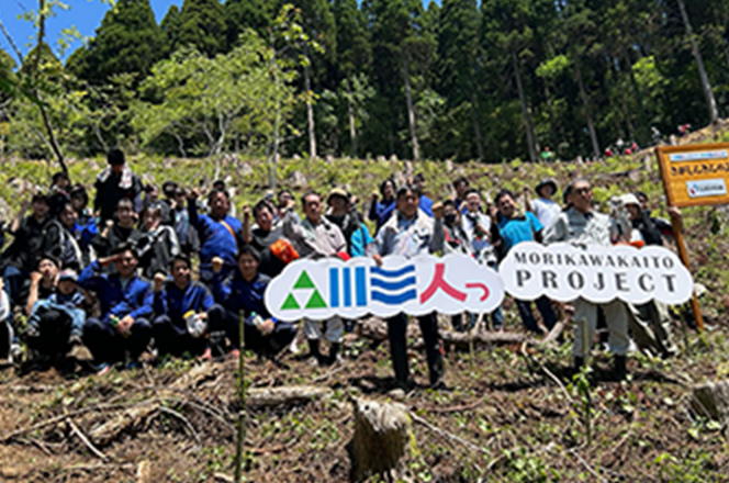 県内地域金融機関として初めて佐賀県「森川海人っプロジェクト」に参画。21世紀県民の森に「さがしんきんの山」と命名したエリアを作り、約100本の植林や定期的な森林整備を行っています。