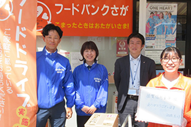 特定非営利活動法人フードバンクさが様の支援事業に賛同し、余った食材を施設や団体へ寄贈する「フードドライブ活動」を実施しています。