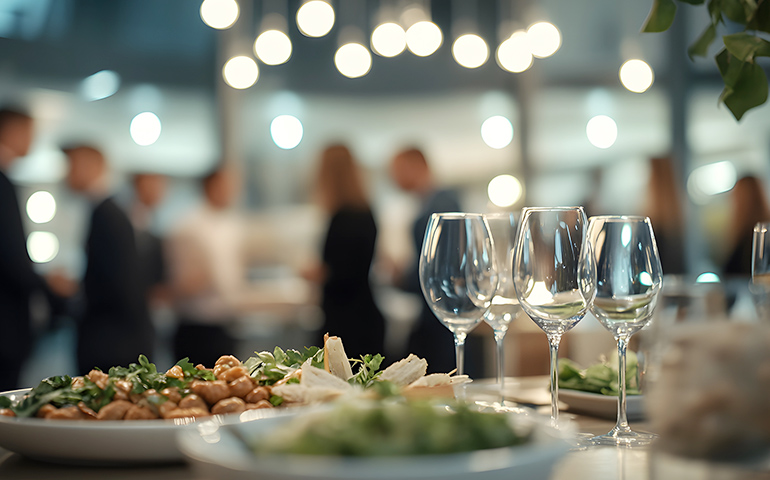 ホテルの大ホールを貸し切り、役職員全員で食事会を開催しています。多くの職員が席を自由に移動してコミュニケーションをとるため、配属部店以外の職員との交流が深まります。