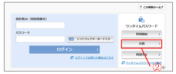 - 2.IBログイン画面下部より、「交換」をクリックする。