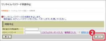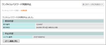 以上で、利用中止作業は終了となります。以後、お取引する際は、お客さまのお取扱に応じた振込用パスワードでの認証となります。