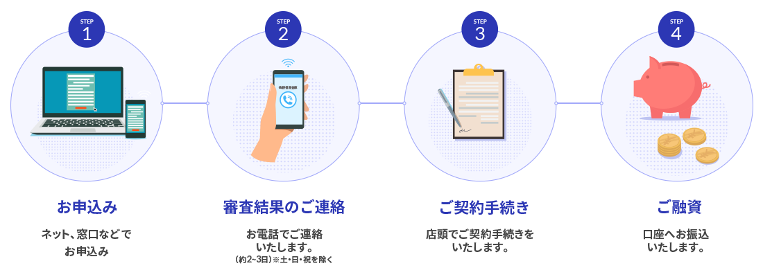 自宅のパソコンやスマホから24時間、簡単仮審査申込み!