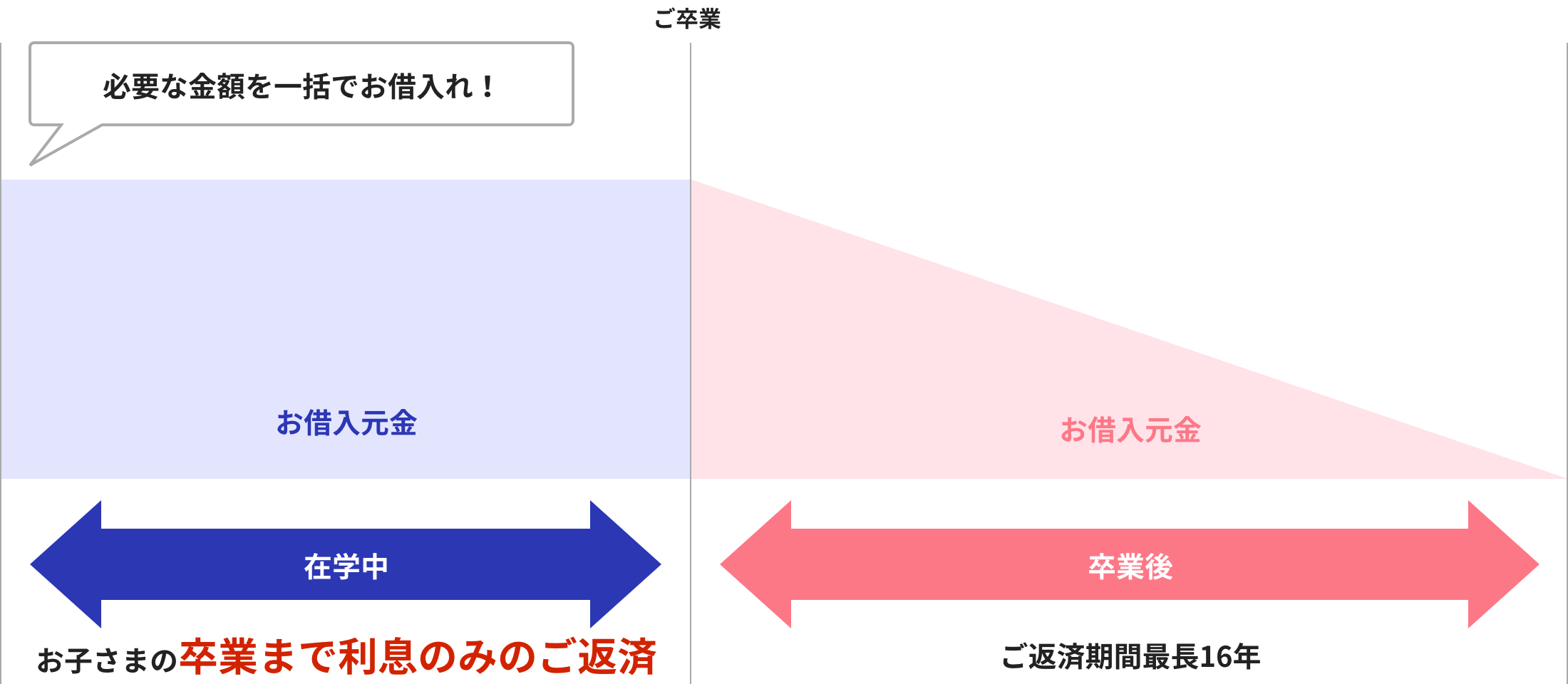 | お申込者 | 学生の保護者(保護者が返済) | 学生の保護者(保護者が返済) | 学生本人(卒業後に学生本人が返済) |