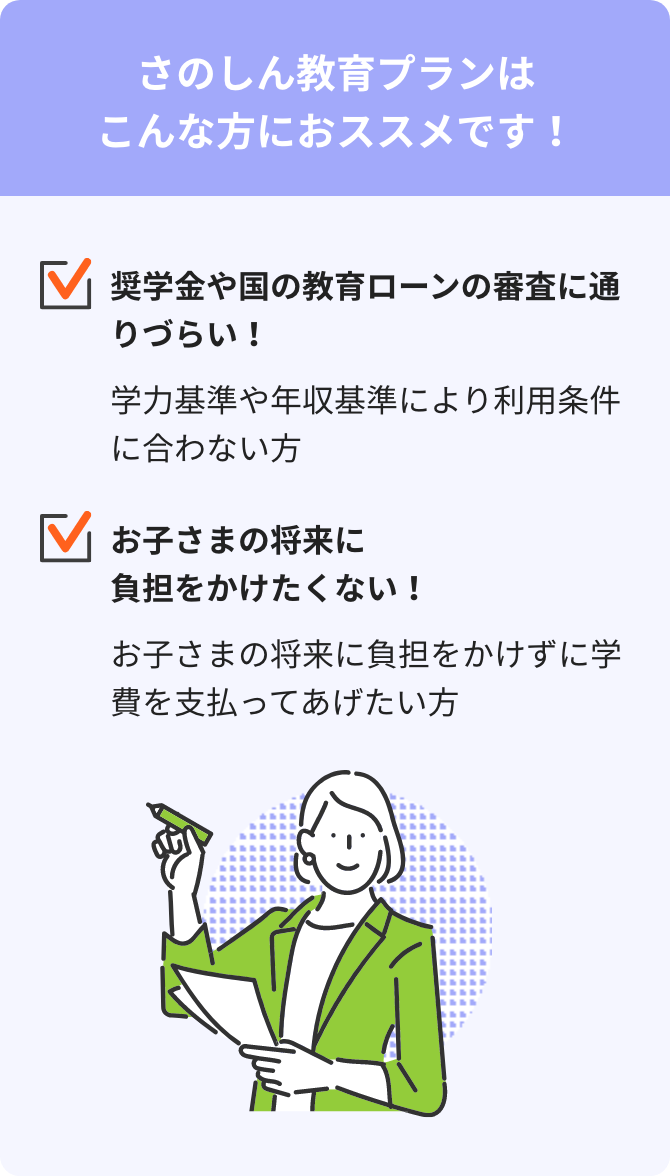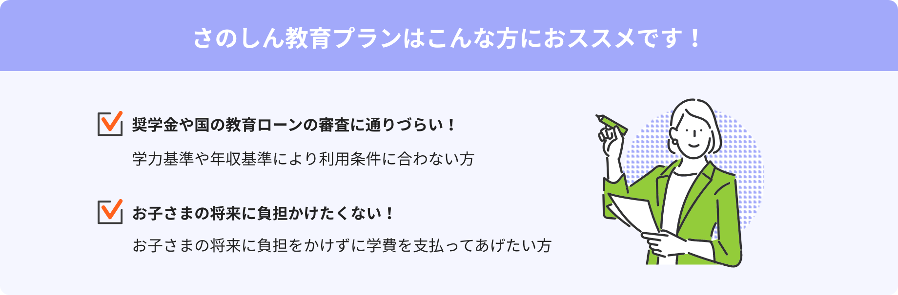 学校(国内外・種類を問いません)納付金や付帯費用のお支払、教育ローンの借換等にご利用いただけるローンです。