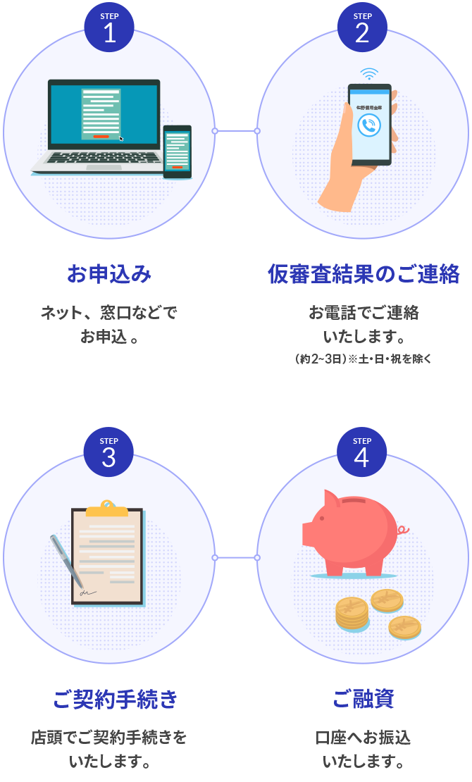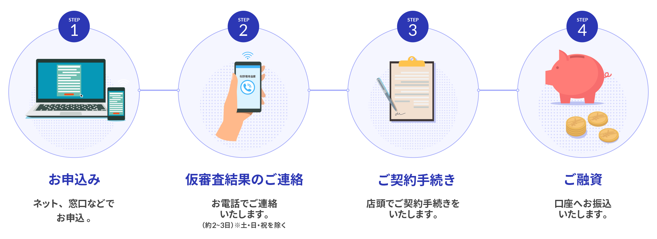自宅のパソコンやスマホから24時間、簡単仮審査申込み!