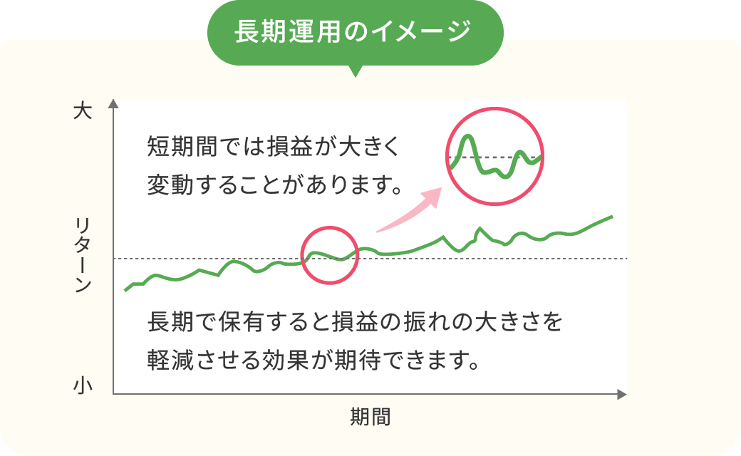 日々の動きに一喜一憂せず、長期保有することで、安定した効率的な運用が期待できます。 -