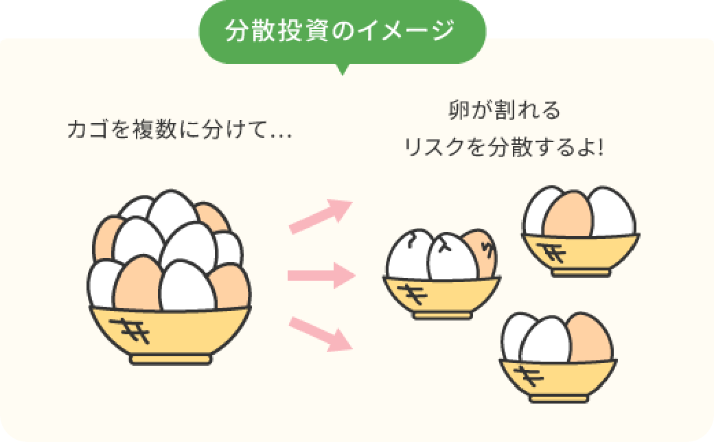 1つの資産に集中して投資するのではなく、いろいろな資産に分けて投資することでリスクを抑えながら効率的に収益を目指せます。