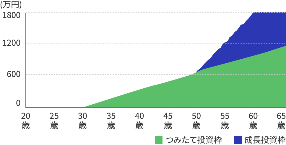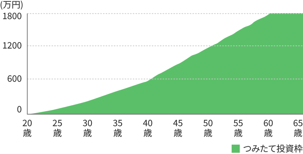 - 非課税保有限度額(1,800万円)を使い切る必要はありません。ご自身のライフプランに合わせた金額で自由に資産形成ができます。