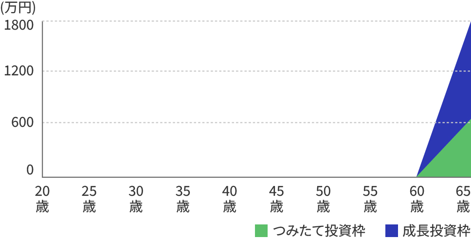 退職金等を原資に60歳から65歳まで年120万円をつみたて投資枠、年240万円を成長投資枠で投資した場合