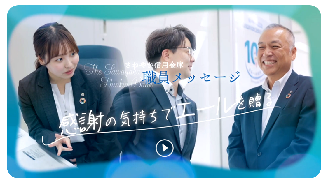 若手・中堅・管理職として活躍するさわやか信用金庫職員が、それぞれの感謝を伝えたい相手へ向け、感謝の気持ちと今後の地域の発展に貢献するためにできること、を語ります。