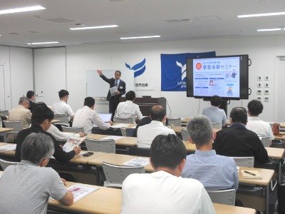 2025年5月26日(月)、羽田本部2階PLUME HALL(プリュムホール)にて「事業承継セミナー、個別相談会」を実施しました。事業承継で代表者が肩書きを譲った後に行う行動・ふるまいをテーマとして、事業承継センター株式会社の内藤先生に講義をしていただきました。セミナーには、事業承継の機会にある代表者・後継者の39名のお客様にご参加いただきました。(参加申込49名)