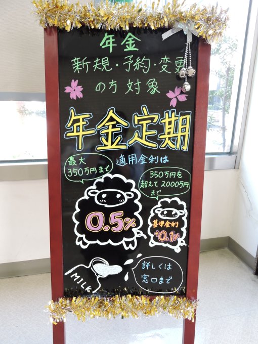 女性職員力作によるブラックボード。お客様の反応も上々です!